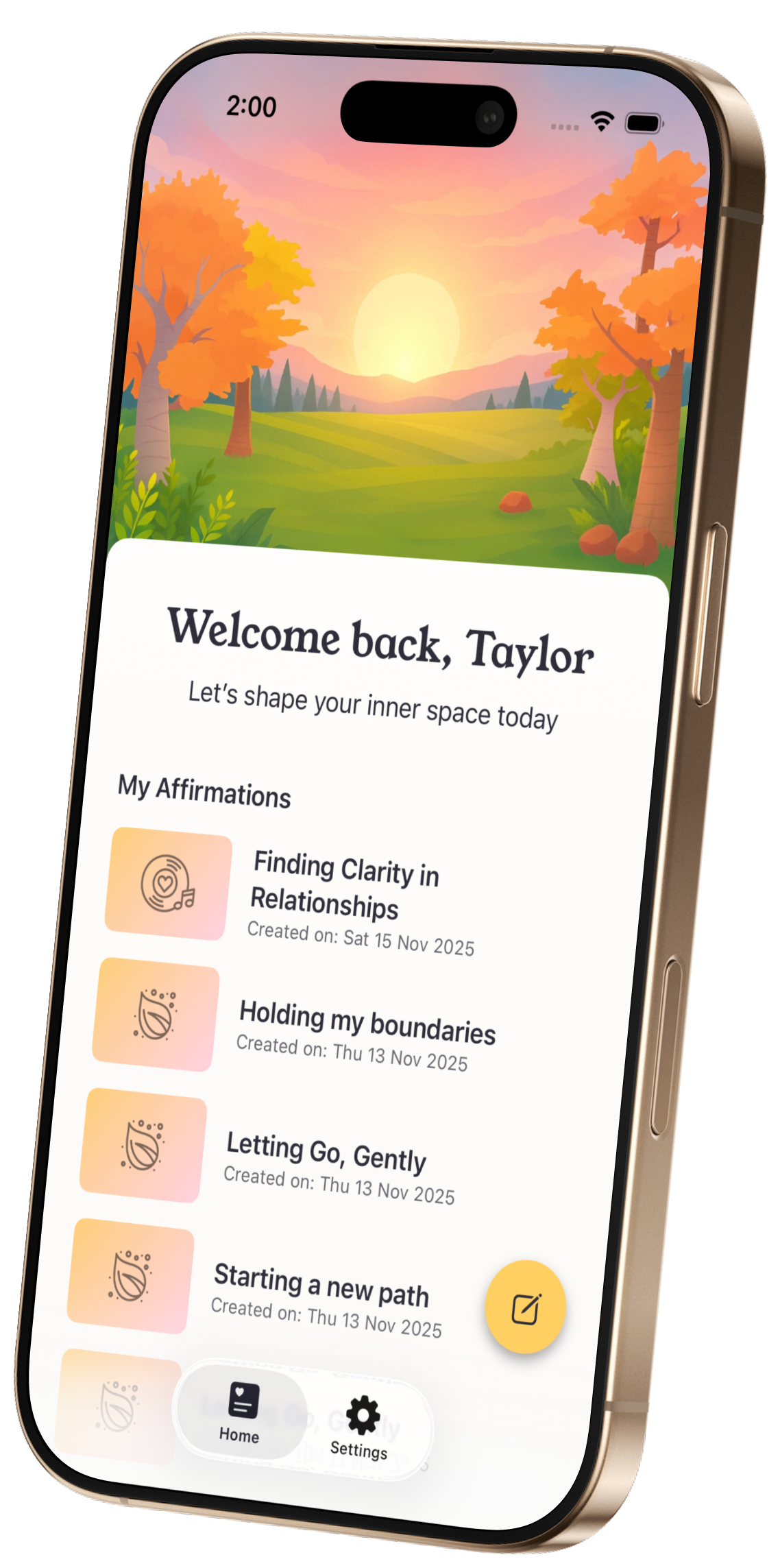 Resonate listens to how you feel and creates affirmations and visualisations personalised to your emotions, goals, and struggles.